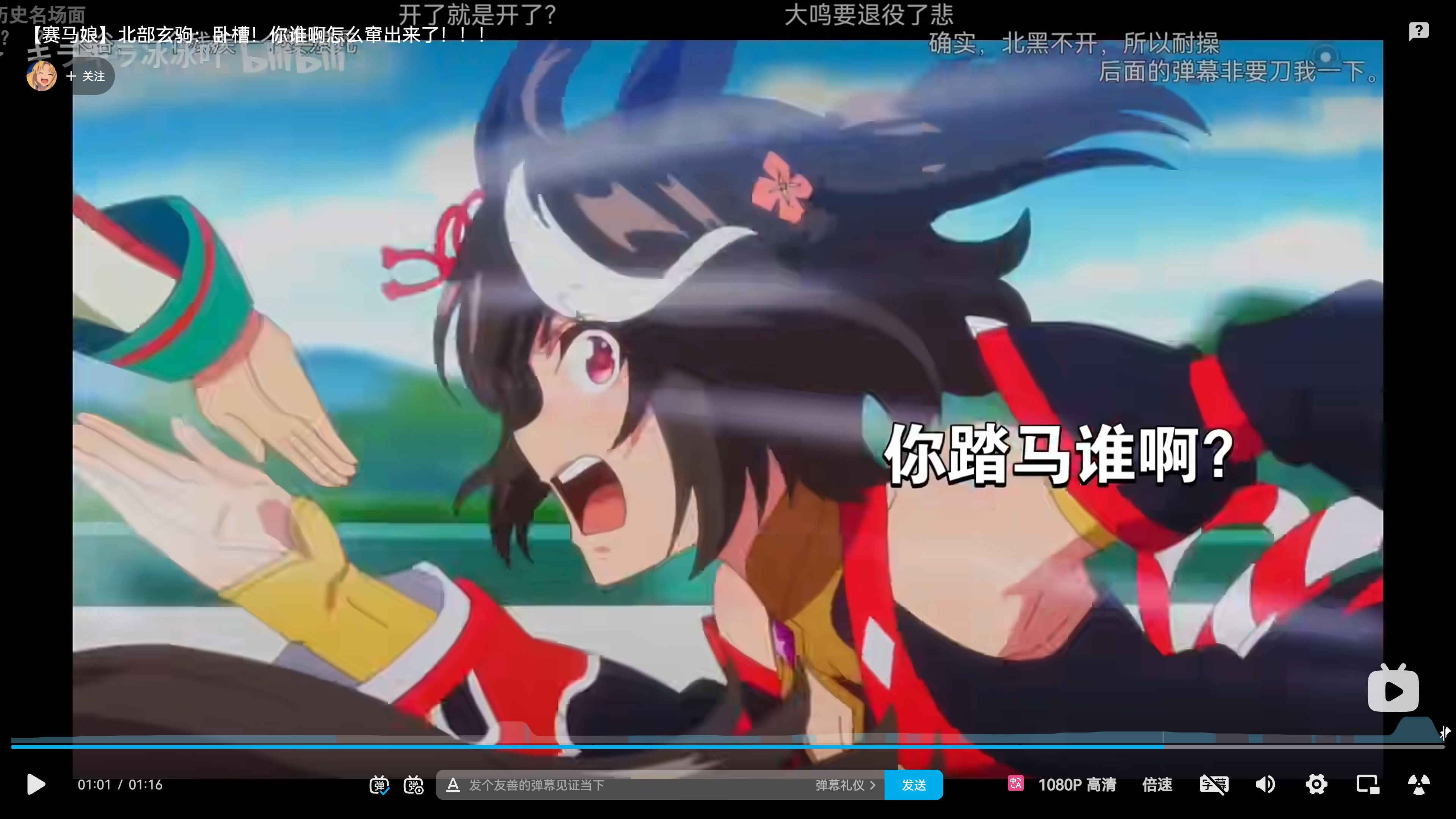 然后啊,我突然想起一个「赛马娘」第三季里的一个冥场面,主要是因为第三季的主角刚好是「北部玄驹」,对就是「北十字星」他爹。这个冥场面,被观众称为顶级烂活之一,最南蚌の一集。大概就是「北部玄驹」想着和宿敌对决,结果自己不认识一人突然半路窜出来。你踏马谁呀?怎么我和宿敌两个人开特效,被一个没有开特效的人超了。因为台词语气问题加没有那批匹马的版权,弄起来就是莫名其妙被一个陌生人夺冠。而且因为这一句「你谁啊」动画被骂惨了,很多人觉得北黑这样是不尊重对手,不尊重真实夺冠的赛马「胜之石」。