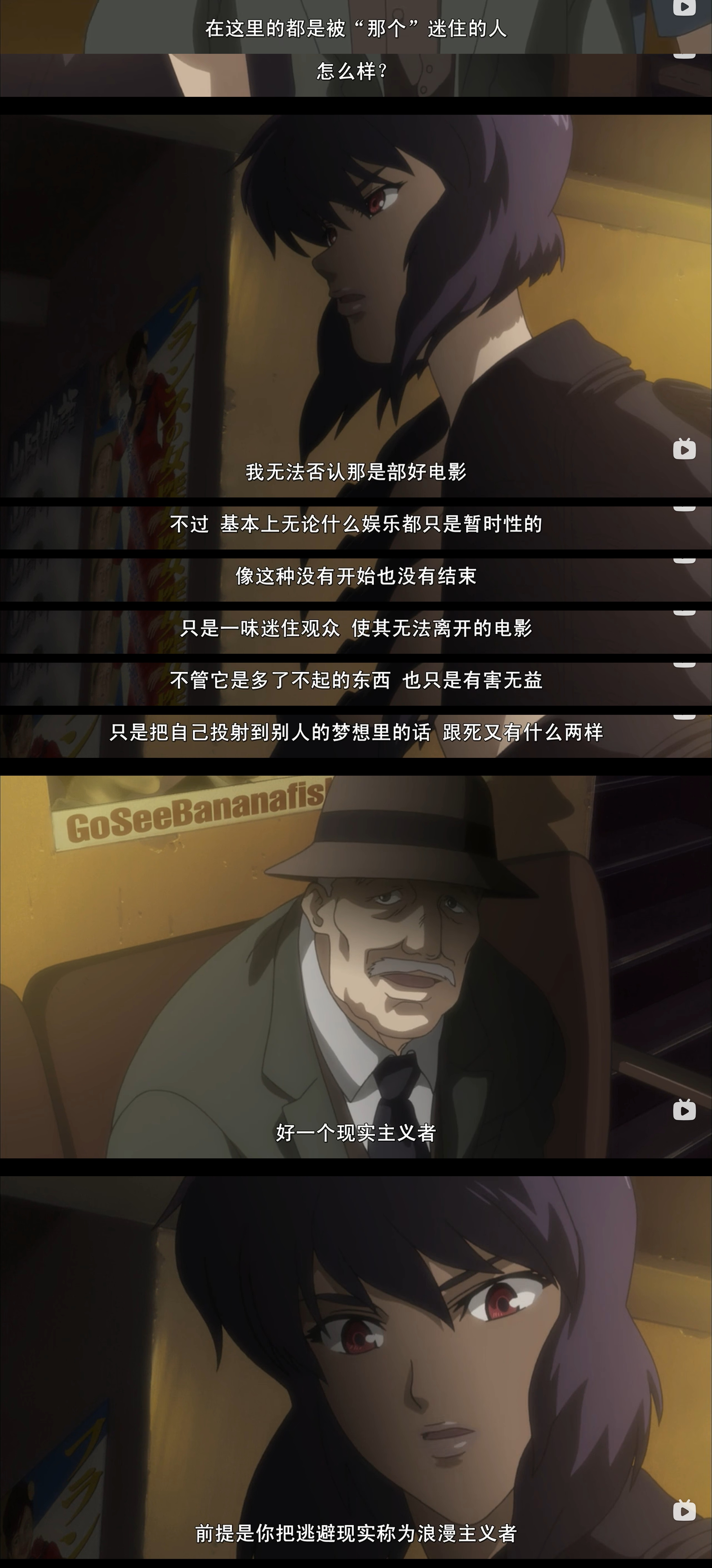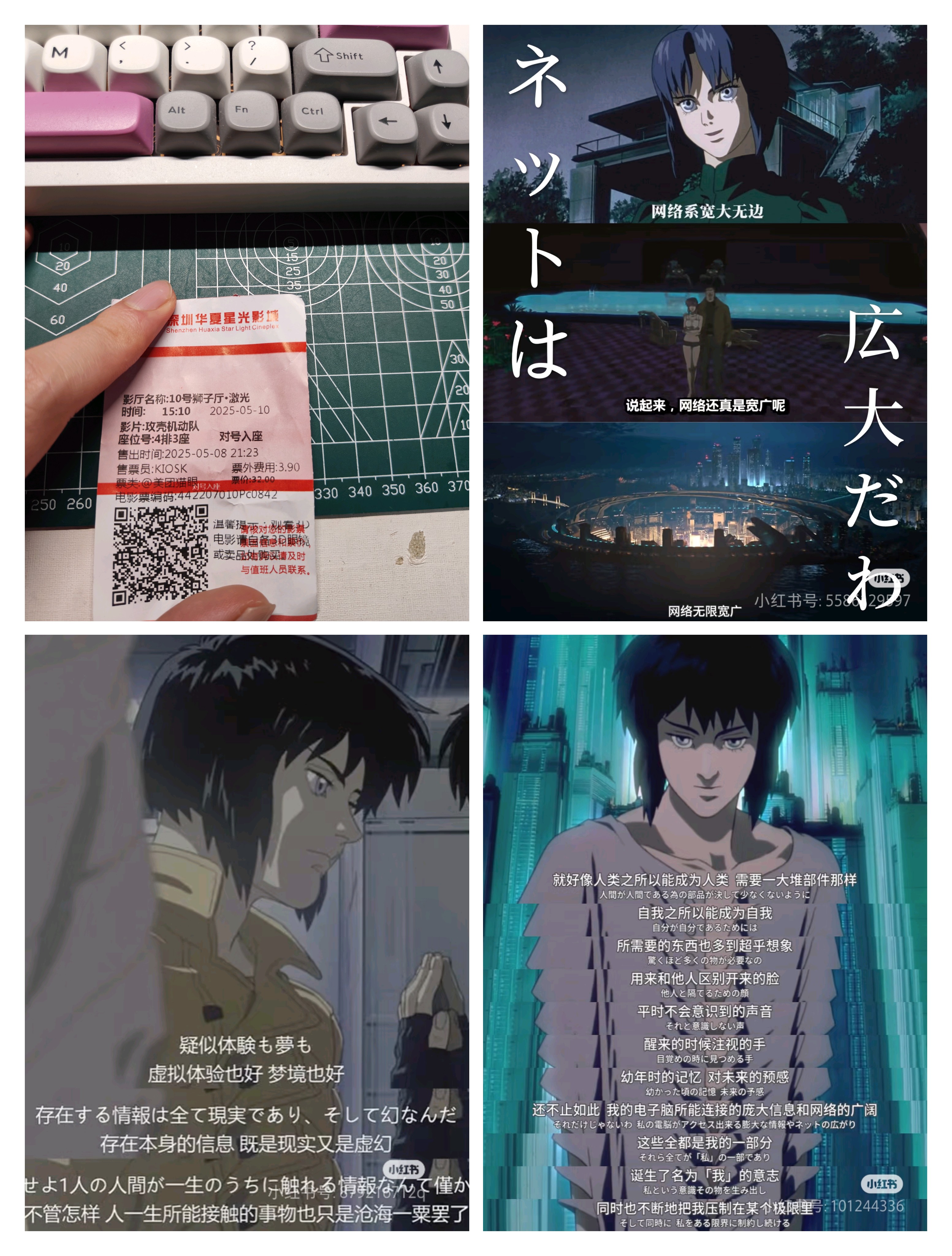 然后刚好我要聊的东西都在我很喜欢的作品「攻壳机动队」里有相应的台词,我还在想怎么把经历感受和思考有机融洽地表达出来。比如下面这,算是我「脱宅」的契机之一。